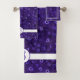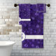 Wrap yourself in luxury and style with the Peacock Paradise Towel Set! Featuring a rich purple background adorned with scattered peacock feathers, this set brings a touch of regal beauty to your bathroom. Each bath towel and hand towel is accented with a crisp white band on one end, adding a sophisticated contrast. At the center of the band, a customizable monogram circle allows you to add your personal touch, making this set uniquely yours.