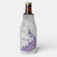 Keep your bottle beverages cold during summer outings with a Purple Peacock Personalized Bottle Cooler. Cooler design features a vibrant purple peacock, a soft white leaf vine against a light gray grunge background with an area to personalize with your name. Additional gift items available with this design as well as a variety of colors.