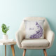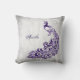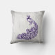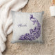This Purple Peacock Personalized Throw Pillow is a visually striking item, featuring a vibrant metallic peacock with iridescent feathers shimmer with purple tones, creating a bold and luxurious focal point. Set against a gray grunge background, adorning the design are delicate white leaf botanicals, intricately woven around the peacock. These leaves, rendered in crisp, clean lines, resemble delicate vines, adding a touch of elegance and nature-inspired softness, softening the grunge background’s roughness while complementing the peacock’s regal presence. Elegant script allows you to add your name or recipient's name for a more personalized home decor gift.