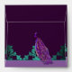 Purple Peacock & Teal Damask Wedding Envelopes--match the invitation suite found below on this page. Please NOTE that this envelope fits square sized (5.25x5.25 invitations) only. Please check below to see if any other sizes are currently available. Each envelope features a dark purple and teal damask print. Envelopes also feature a printed purple band with a swirly ornamental frame on the front for addresses. An elegant purple and navy blue peacock sits perched on the back of each envelope with it's tail cascading downwards--showcasing it's beautiful feathers.