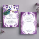 Purple peacock vintage garden Indian wedding editable template invitation instant digital download, watercolor peacock in a vintage garden with lanterns and purple flowers wedding invitation template all in one with RSVP and wedding details at the back