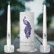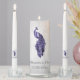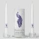 Personalize special candles for your wedding ceremony with a Purple Peacock Wedding Unity Candle Set. Candle design features a vibrant peacock resting on a delicate white foliage vine against a grunge background. Personalize with the groom and bride's names along with the wedding date, and taper candles with surnames. Additional wedding stationery and gifts available with this design as well.