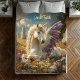 This fleece blanket features a purple winged pegasus with a unicorn horn, resting in a spring meadow surrounded by an ancient druid stone circle. Inspired by earth magic, megalithic stonework, and ley lines, this design is ideal for anyone drawn to mythical creatures and sacred landscapes. Suitable for a nursery, bedroom, or meditative space. The text at the top can be changed to add a name or message. Contact me for help with customization.