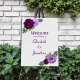 Elegant design with flowers in shades of purple with eucalyptus and botanical greenery