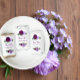 Elegant design with flowers in shades of purple with eucalyptus and botanical greenery