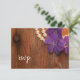Purple Periwinkle, Pearls Barn Wood Wedding RSVP Card