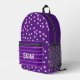 Purple Personalized Pink and Grey Polka Dot Printed Backpack.