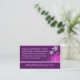 Trendy business card design of white abstract flower silhouettes on a purple background with pink splats. Customization is easy.