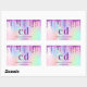 A girly rianbow, unicorn colored holographic background in pink, purple, and mint green. Decorated with purple and pink drips, paint dripping look. Personalize and add a name, monogram initials and a phone number. Block letters. Purple colored letters.