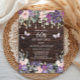 Purple Pink Flowers Butterflies Rustic Wood 60th Invitation