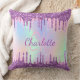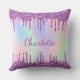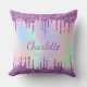 A trendy rainbow colored, holographic background with unicorn and rainbow pastel colors in pink, purple, rose gold, mint green. Decorated with faux glitter drips in purple and pink. Personalize and add a name and monogram initials. The name is written with a modern hand lettered style script. Purple and pink colored letters.