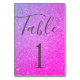 Purple and Pink Ombre Sparkle and Glitter Script Modern and Elegant Table Number . The table number can be updated and changed on this purple and pink card.