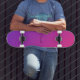 A modern purple and pink gradient custom skateboard deck. Perfect for a trendy teen girl or young woman. Easily add your name or monogram.