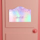 A trendy holographic background with unicorn and rainbow pastel colors in pink, purple, mint green. Decorated with confetti . Personalize and add your name.