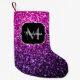 Purple Pink Ombre faux glitter sparkles Monogram Small Christmas Stocking