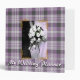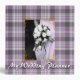 A lavender, white, and black plaid is the background for this unusual wedding planner design, with a lovely bride photo placed in the middle with gold corner ornaments. Customize this great looking binder with your text and replace photo with your own if you like or leave it as is. Makes a great shower gift.