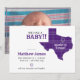 Announcing the latest baby made in Texas! Let everyone know when your little horned frog arrives with this classy announcement in school colors. Front features space for baby's name and birth details, along with your names. Back side for your horizontal image. Also available in a vertical layout. Matching products available.