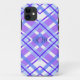 Customize this purple plaid phone case with your initials or name - whatever text you'd like!