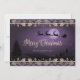 Purple Plaid Reindeer Santa Botanical Christmas Holiday Card