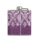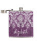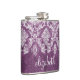 Purple Plum Grunge Damask Pattern with Name Hip Flask