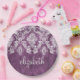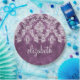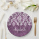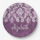 Purple Plum Grunge Damask Pattern with Name Paper Plates