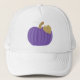 Fun and elegant painting of a purple pumpkin with a gold stem and leaf, are printed on custom hats.