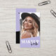The back includes your contact information—such as phone number, website, and email—along with a QR code that links to your booking page or website. Below the QR code, the phrase “Connect with us” appears, followed by social media icons for an easy way to stay in touch. The lilac purple background color can be customized to match your branding, making this a chic and professional card for makeup artists.