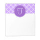 Customize these purple quatrefoil pattern notepads with your own monogram letter.