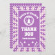 A retro playing card inspired Queen of Hearts and Alice in wonderland themed birthday party invitation design in a bright purple and light pink color palette with heart and diamonds details.