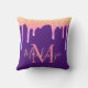 Purple Rainbow Sparkle Glitter Drips Monogram Throw Pillow