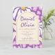Purple Retro Floral with QR Wedding Invitation