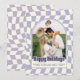 Purple Retro Groovy Checkered Happy Holidays Photo Holiday Card