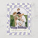 Purple Retro Groovy Checkered Happy Holidays Photo Holiday Postcard