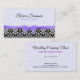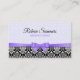 Elegant purple ribbon with black and white vintage floral damasks, business card template.