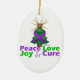 Purple Ribbon Christmas Peace Love, Joy & Cure Ceramic Ornament