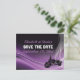 Purple road biker wedding Save the Date postcard, featuring a motorcycle on an abstract gradient purple and black background and a white mesh. Some elements courtesy of Clipartandfonts.com.