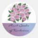 A pretty purple rose bouquet with dark green leaves. A shaded purple border says 'plant seeds of kindness'. This can be changed if so desired.