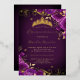 Purple Rose Floral Gold Swirl Quinceanera Foil Invitation