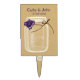 purple rose on a Rustic, shabby chic country mason jar on FAUX white lace and burlap back personalized cake picks card. Elegant an stylish for a country wedding or a farm wedding great for any outdoor wedding too. Matching products also available.