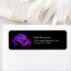Purple Rose With Water Drops on Black Background Label