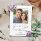 An elegant Wedding Save the Date Card with 1 special photo of the couple completed by wonderful elegant calligraphy and purple roses. You can personalize this card with your pre-Wedding details.