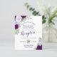 These affordable, budget friendly invitations are designed for guests who are invited to the reception only, and not the marriage ceremony. The elegant design features hand painted watercolor roses in shades of purple, lavender, and plum, with a bevy of eucalyptus leaves and greenery. The typography features fancy script calligraphy, and the back is a deep marbled burgundy color. Perfect way to celebrate your wedding without spending a fortune on the invitations.