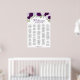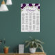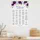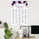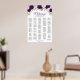 This beautiful wedding seating chart accommodates up to 250 names arranged in alphabetical order. The design's rustic boho chic theme features a border of hand-painted watercolor roses in shades of purple, violet, lavender, and plum, complemented by sprigs of eucalyptus leaves and garden foliage. The elegant script calligraphy title reads Welcome! Please find your table. The names of the couple and wedding date appear at the bottom. This gorgeous seating chart will make it easy for your guests to find their seats while adding beauty, style, and charm to your wedding reception. This chart is laid out in a vertical or portrait orientation.