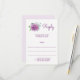 These wedding reply cards feature a purple watercolor rose. You can change the text color and style by clicking he "Customize" button. These wedding reply cards are part of the Purple Rose Wedding Collection which includes a full range of matching wedding stationery such as wedding invitations, information cards, address labels, stickers, postage stamps, envelopes, favor boxes, wishing well cards, programs, menus, bridal gifts and much more. Visit the collection page in our store to see the full range of products that you can personalize for your wedding.