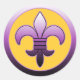 Round stickers in two sizes, with a large fleur de lis design. This one is purple with a gold background but you can customize the background color to anything you like. The fleur-de-lis is a stylized lily (in French, fleur means flower, and lis means lily) or iris used as a decorative design or symbol. It's a symbol of all things France, and Quebec, and New Orleans and many other places.