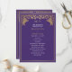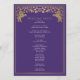 Unveil the magic of your big day! These medieval fantasy wedding programs feature a regal lion surrounded by intricate gold florals and a monogram against a purple background, blending elegance with a touch of grandeur. A perfect keepsake for your fairytale celebration! The gold featured on this item is NOT real foil and is printed in flat colors.