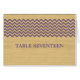 Modern and trendy Rustic Chevron Table Number Card featuring a digital art printed woodgrain texture background and a zig zag pattern of purple chevron stripes. This design is perfect for a rustic yet elegant wedding. Easy to customize, simply add the appropriate table number(s) in the text field provided. Click on "Customize It" to find more personalization options.