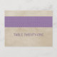 Elegant and chic Rustic Damask Wedding Table Number Postcard featuring a vintage textured paper look background and a flourish damask pattern border in purple. Easy to customize, simply add the appropriate table number(s) in the text field provided. Click "Customize It" to find more personalization options.