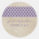 Elegant and sophisticated Rustic Quatrefoil Wedding Stickers featuring a vintage textured look background and a modern pattern border in purple. Easy to customize, simply add your wedding details. Click "Customize It" to find more personalization options.