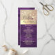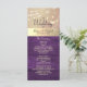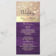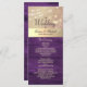 Capture the essence of timeless elegance with our modern yet rustic barn wood-inspired wedding program card. Delicately adorned with rich purple hues, intricate gold floral lace, and whimsical string lights, it seamlessly blends boho charm with contemporary style. Each detail, from the trendy calligraphy script to the natural rustic textures, promises a celebration as unique and enchanting as your love story.
